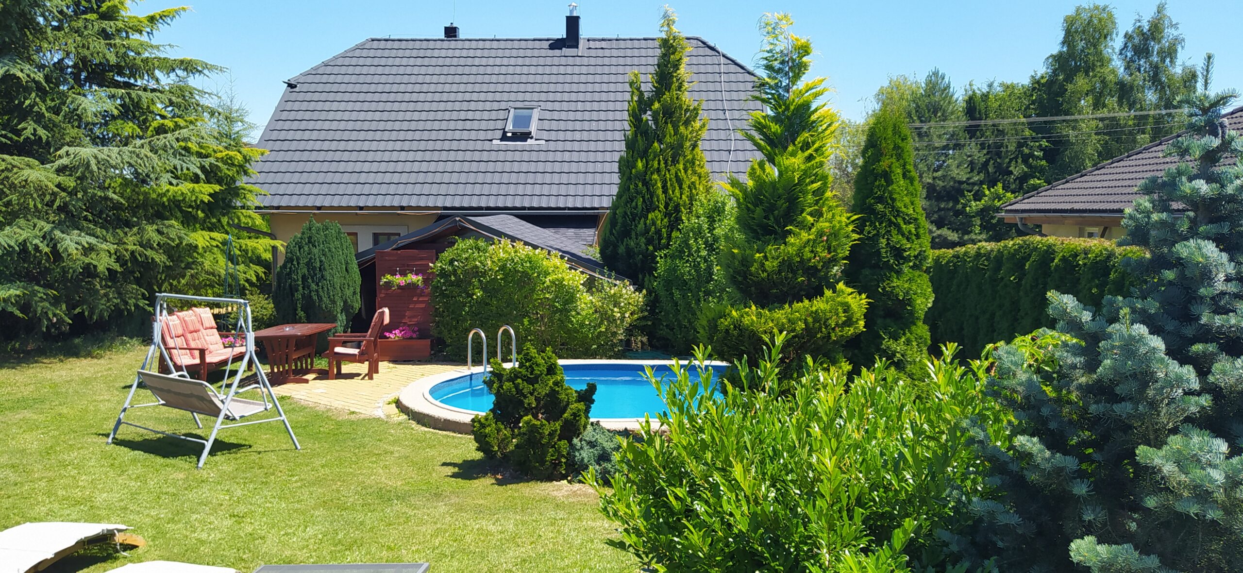 Posezení a relaxace v upravené zahradě.